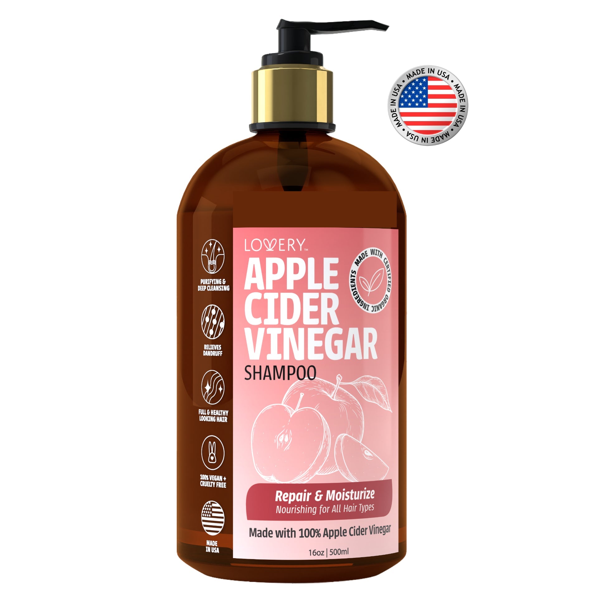 Apple Cider Vinegar Shampoo - 16oz Organic Hair Care Made in USA