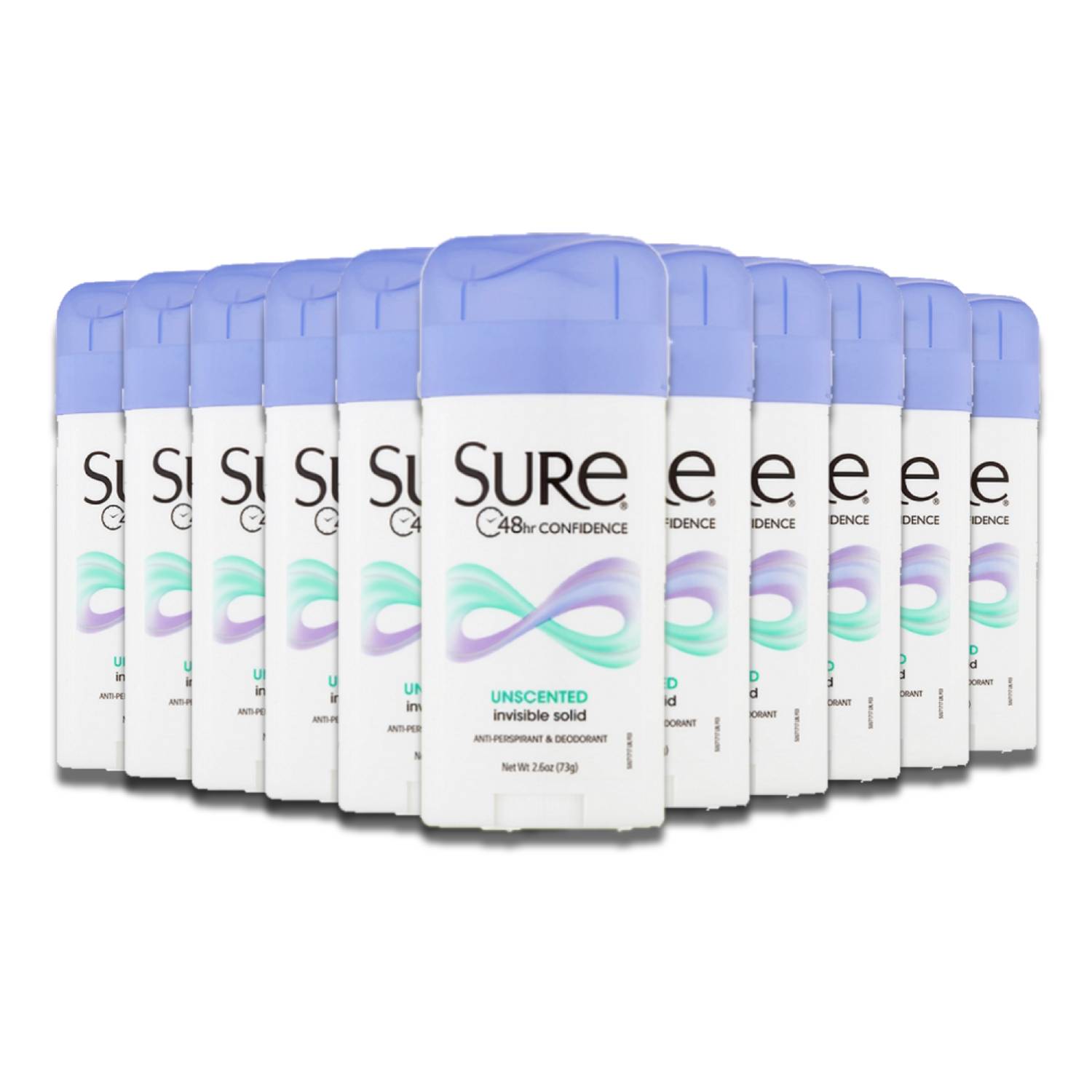 Sure Invisible Solid Anti-Perspirant and Deodorant, Unscented - 2.6 oz ea - 12 Pack