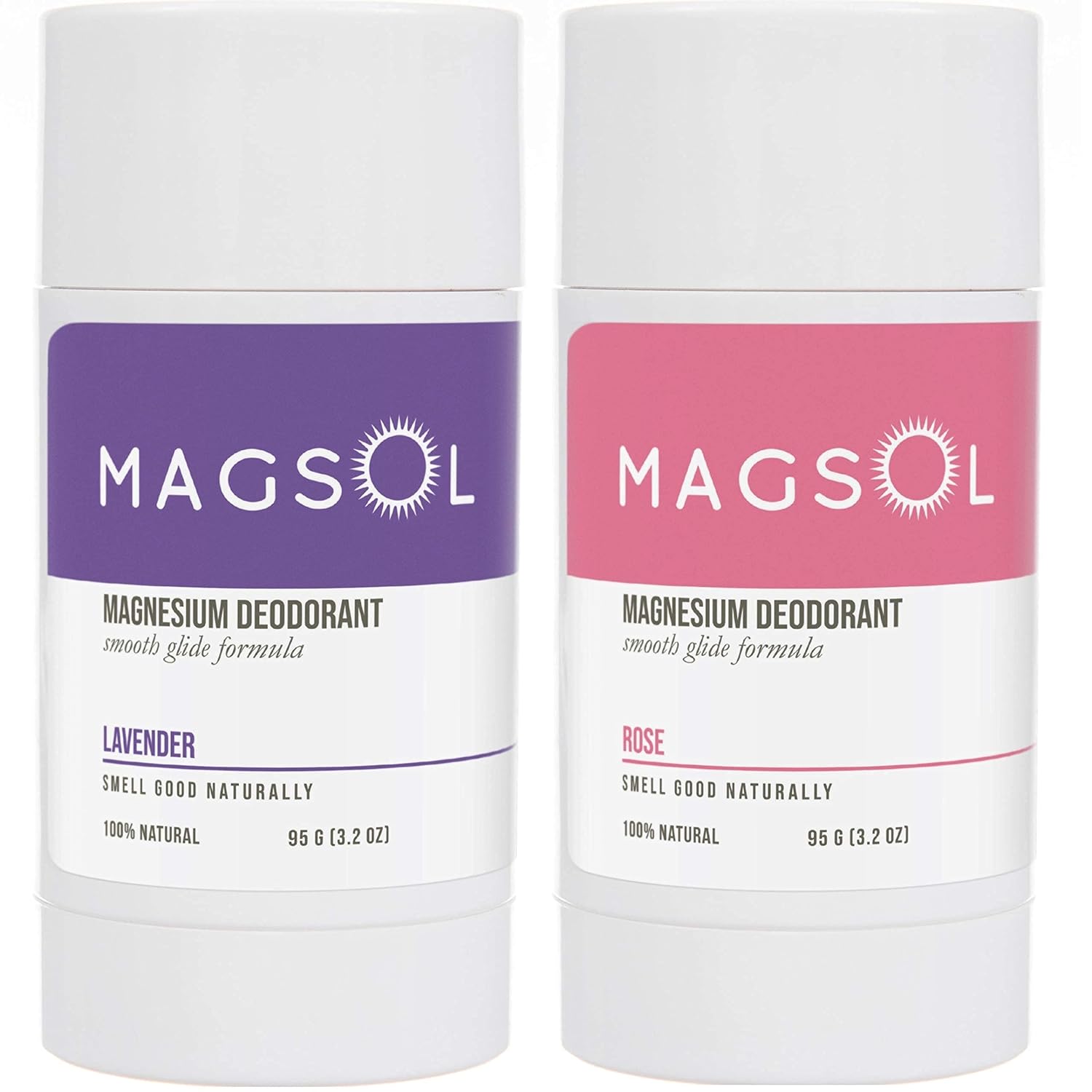 MagSol Organics Natural Deodorant for Men and Women - Lavender and Rose Scent, Aluminum Free, Baking Soda Free, Magnesium Based, 2 Pack Bundle