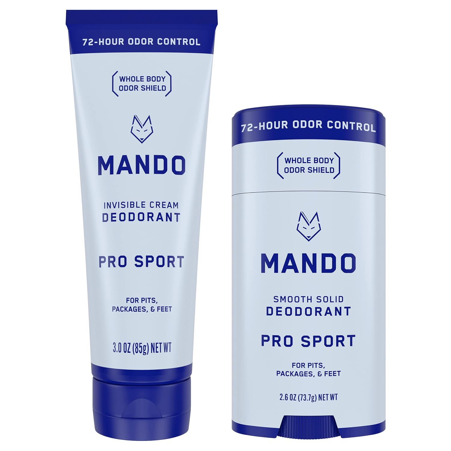 Mando Whole Body Deodorant - Invisible Cream and Solid Formulas - 72 Hour Odor Control - Aluminum & Baking Soda Free - Skin Safe - 3 oz Cream & 2.6 oz Solid Bundle - Pro Sport