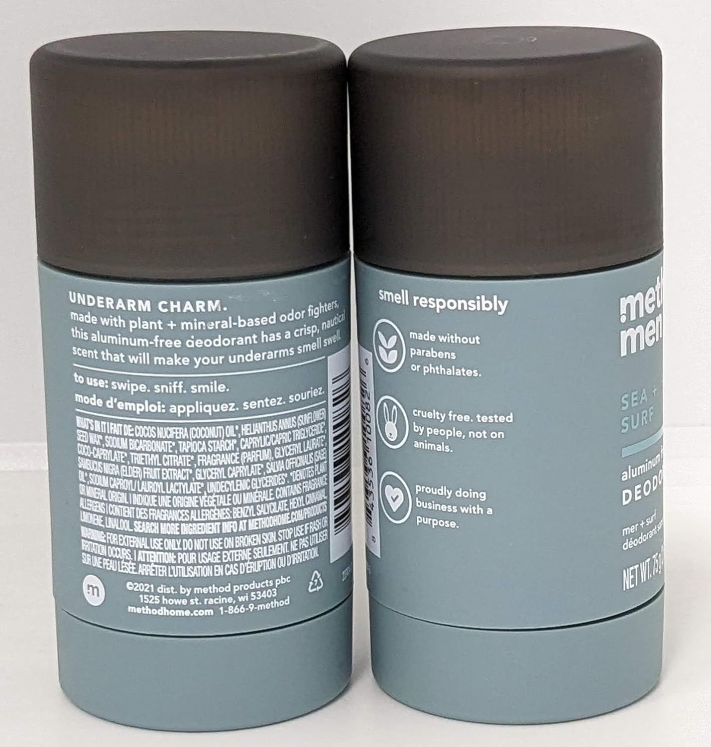 Method Men Sea And Surf Scent Aluminum Free Deodorant, 2.65 Ounce (2 Pack)