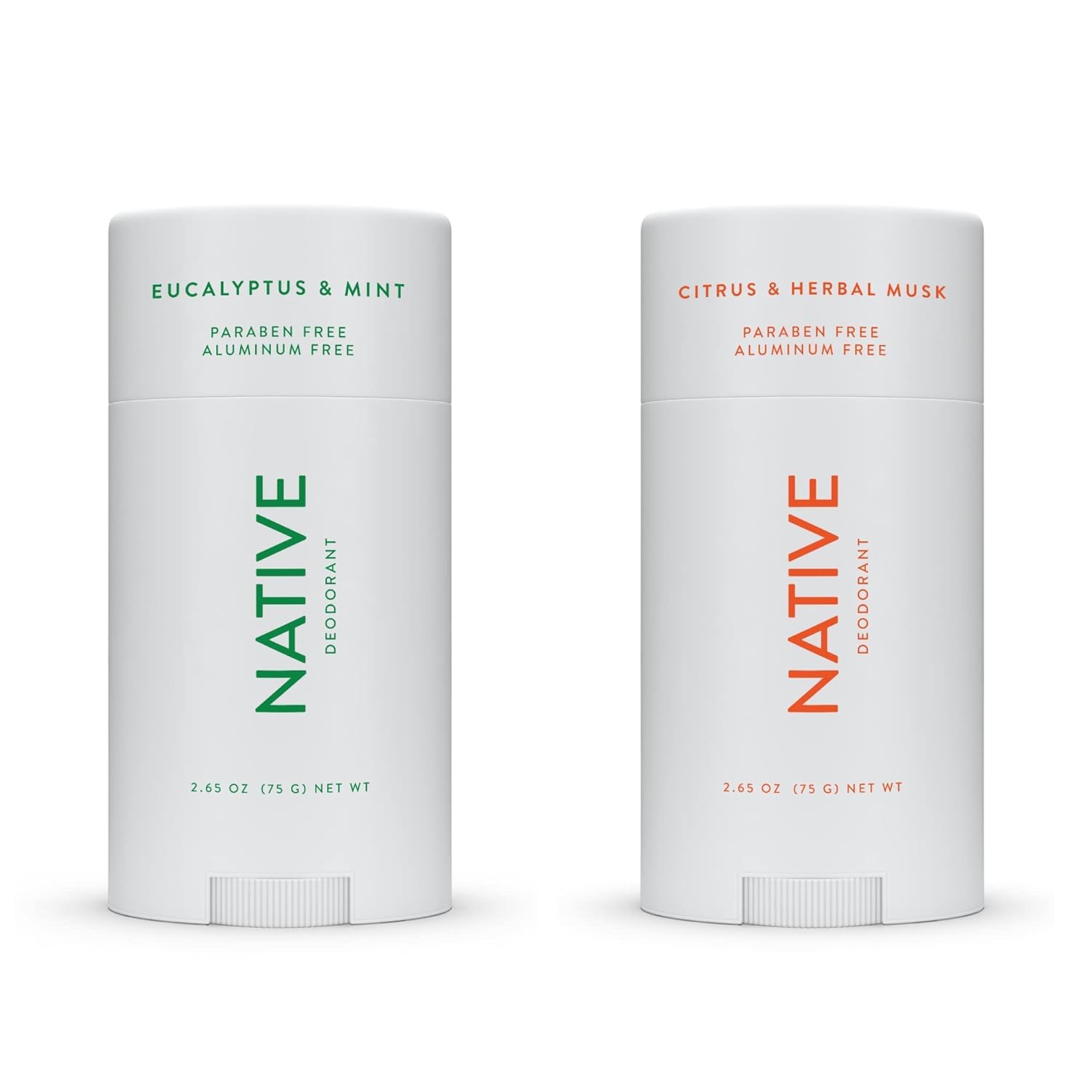 Native Deodorant | Natural Deodorant for Women and Men, Aluminum Free with Baking Soda, Probiotics, Coconut Oil and Shea Butter | Eucalyptus & Mint and Citrus & Herbal Musk - Variety Pack of 2
