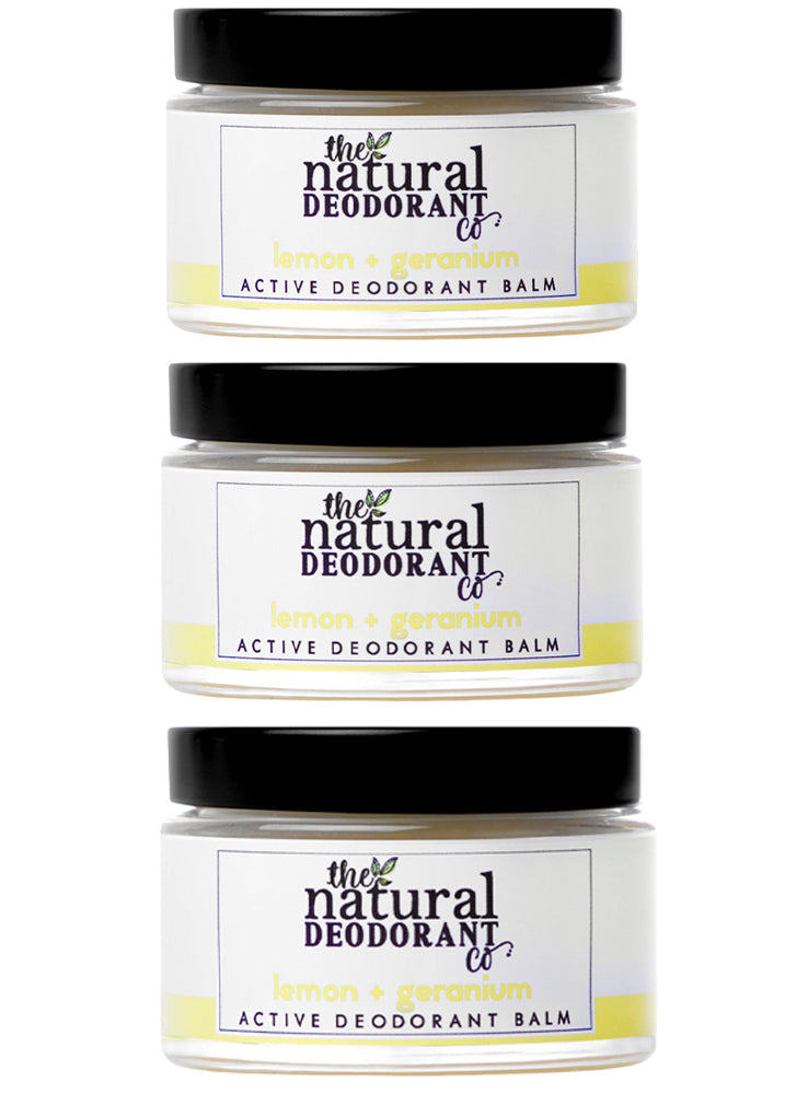 Natural Deodorant Co Active Deodorant Balm Lemon Geranium is an extra-strength, 24 hour all-natural deodorant with a delicate lemon & geranium scent. Packed with natural, organic and Fair Trade ingredients, this skin-loving formula will keep you shower fresh all day long - without the use of chemicals. It contains ingredients that will inhibit bacteria, prevent odour and nourish the delicate underarm skin, and comes in a glass jar which gives you control over how much you use each day. It has a light creamy consistency that melts into the skin instantly, giving you total peace of mind. With daily use the pot should last for over a month.