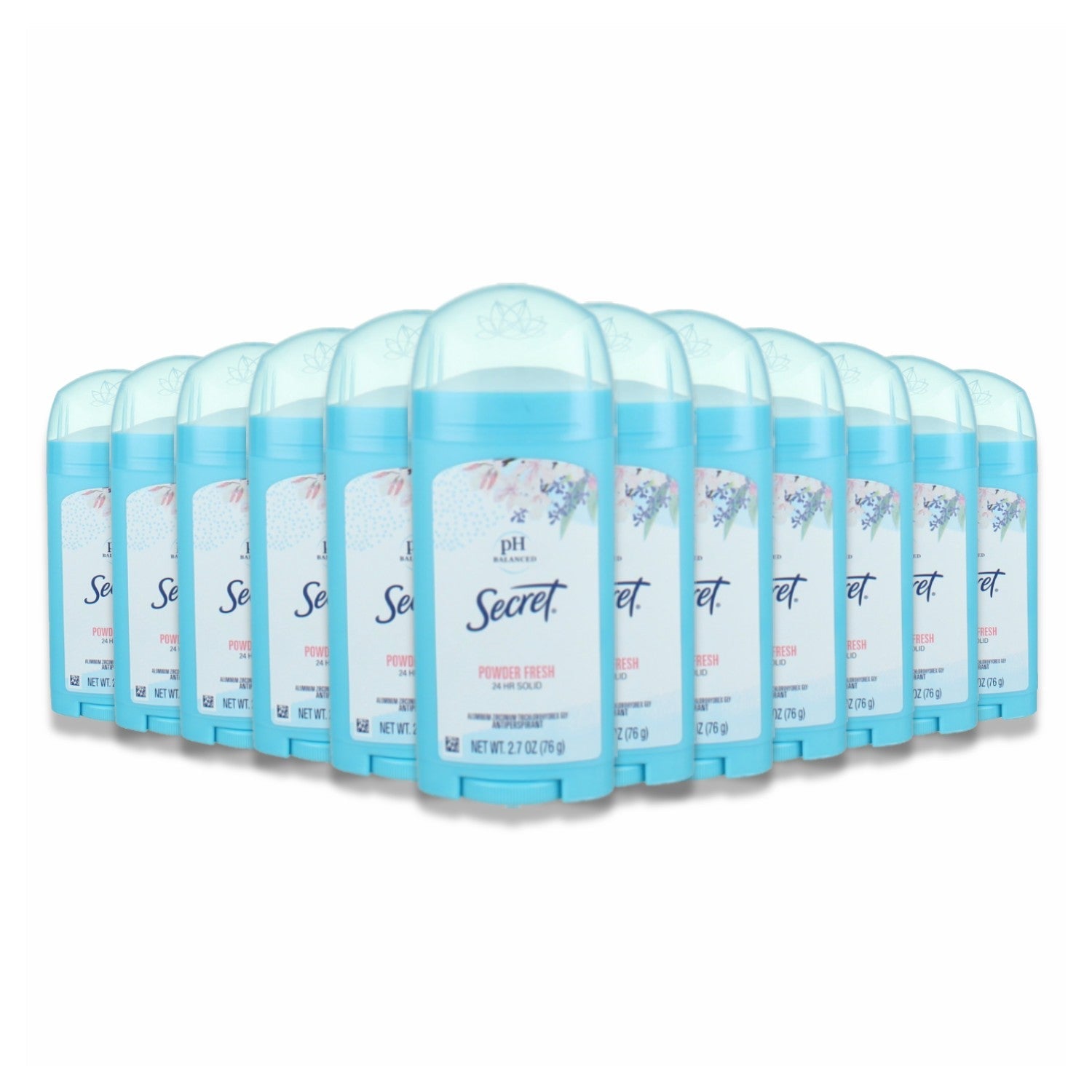 Experience day-long freshness with Secret Original Powder Fresh Deodorant. This bundle includes 12 solid antiperspirant & deodorant sticks, each containing 2.7 oz of effective formula. The Powder Fresh scent adds a classic touch to your routine, keeping you confident throughout the day. The advanced formula offers both odor protection and wetness control, ensuring you stay dry and comfortable. Whether you're an individual seeking reliable daily protection or a reseller looking to provide quality products, this 12-pack is an excellent choice. The convenient twist-up design ensures easy application, and the lasting formula offers dependable results. Prioritize your confidence and comfort with the trusted quality of Secret. Enhance your daily regimen by adding this bundle to your cart now and enjoy the benefits of reliable odor and wetness protection.