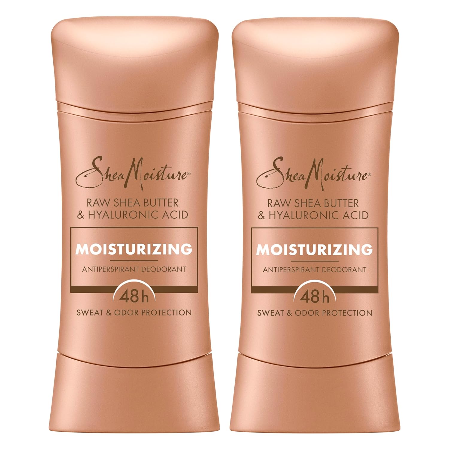 SheaMoisture Antiperspirant Deodorant Stick Moisturizing Raw Shea Butter & Hyaluronic Acid 2 Count for 48HR Sweat & Odor Protection with No Parabens & No Mineral Oil 2.6 oz